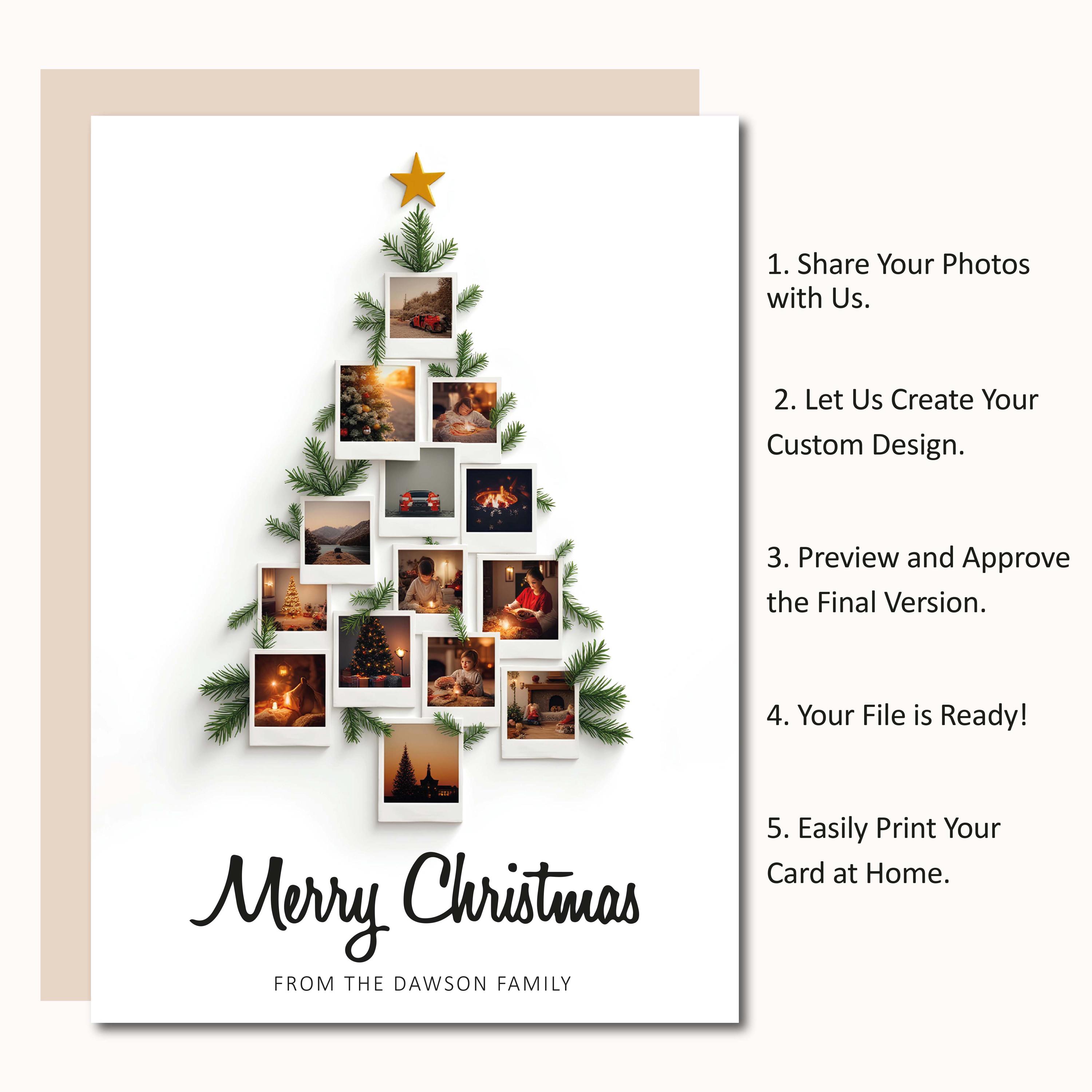 Custom Christmas Family Tree Photo Collage Card - Printable Holiday Card - Minimalist Personalized Christmas Photo Card - Instagram or Print
