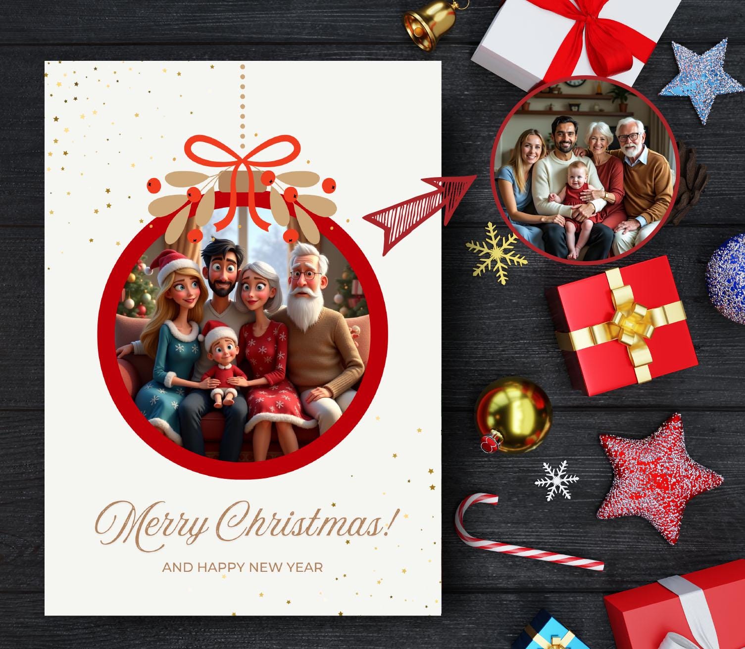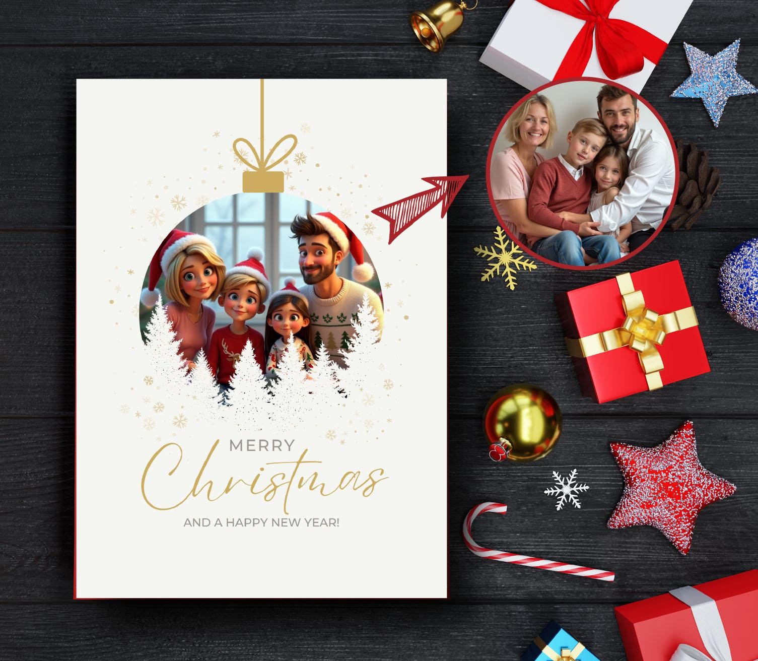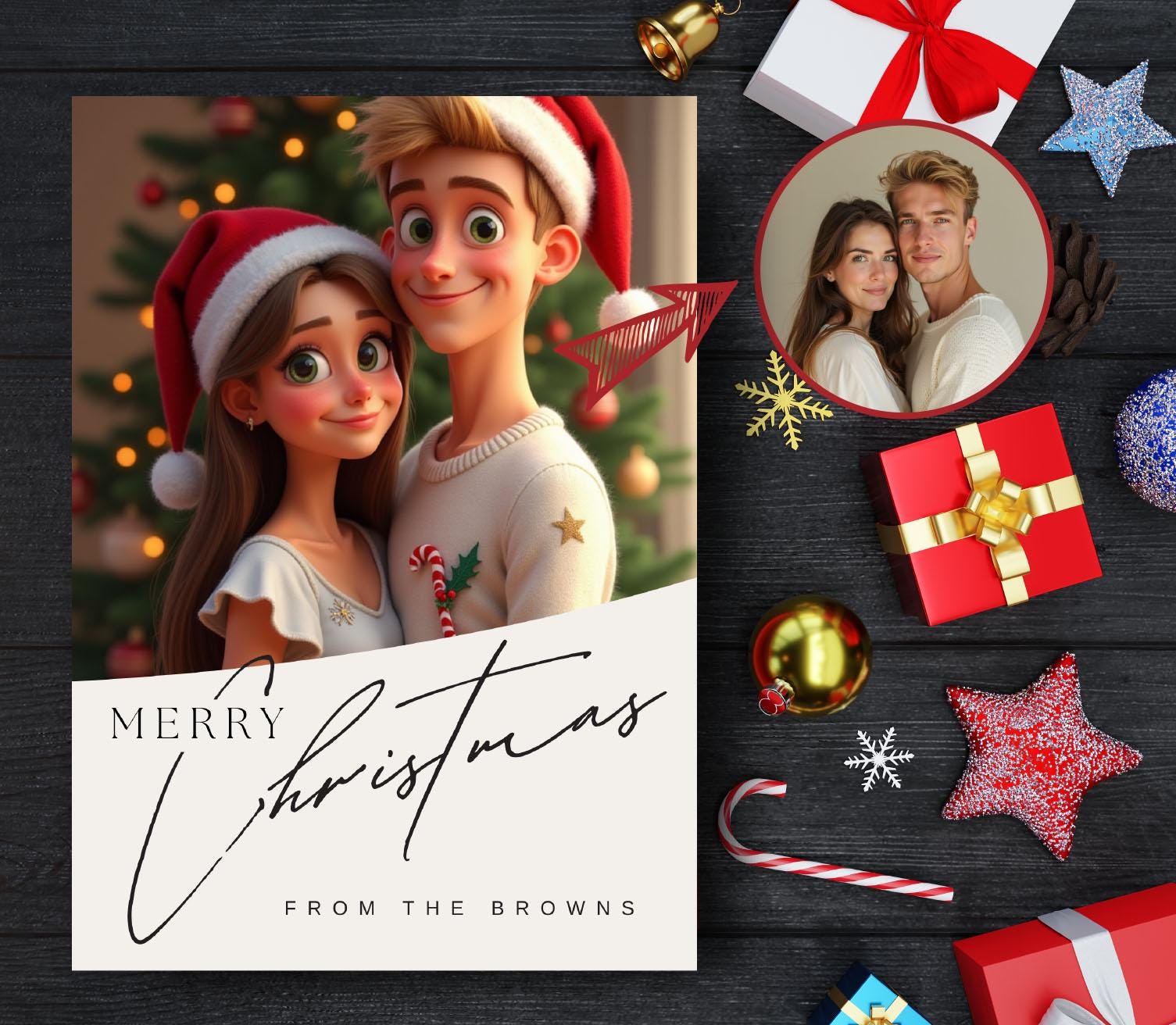 Bring extra joy to your holiday season with a personalized cartoon Christmas card! This one-of-a-kind card features a custom illustration of your family and pets, designed to capture the festive spirit in a fun and memorable way. A perfect greeting to make your loved ones smile!