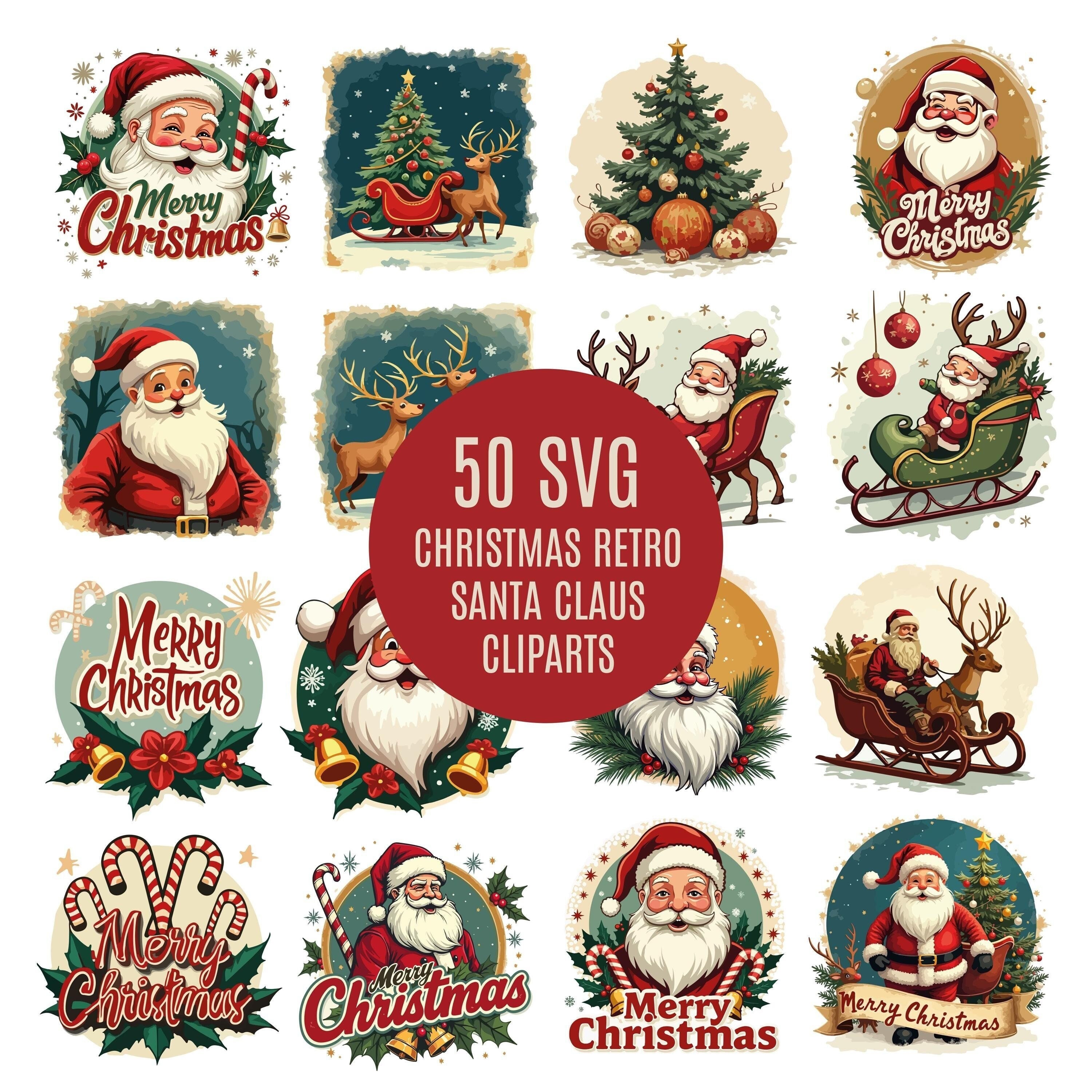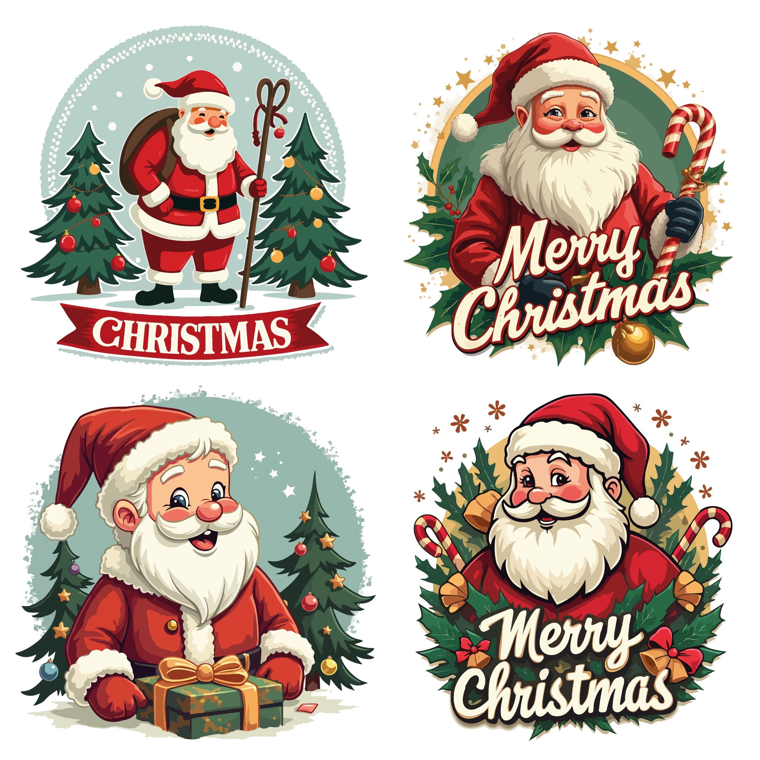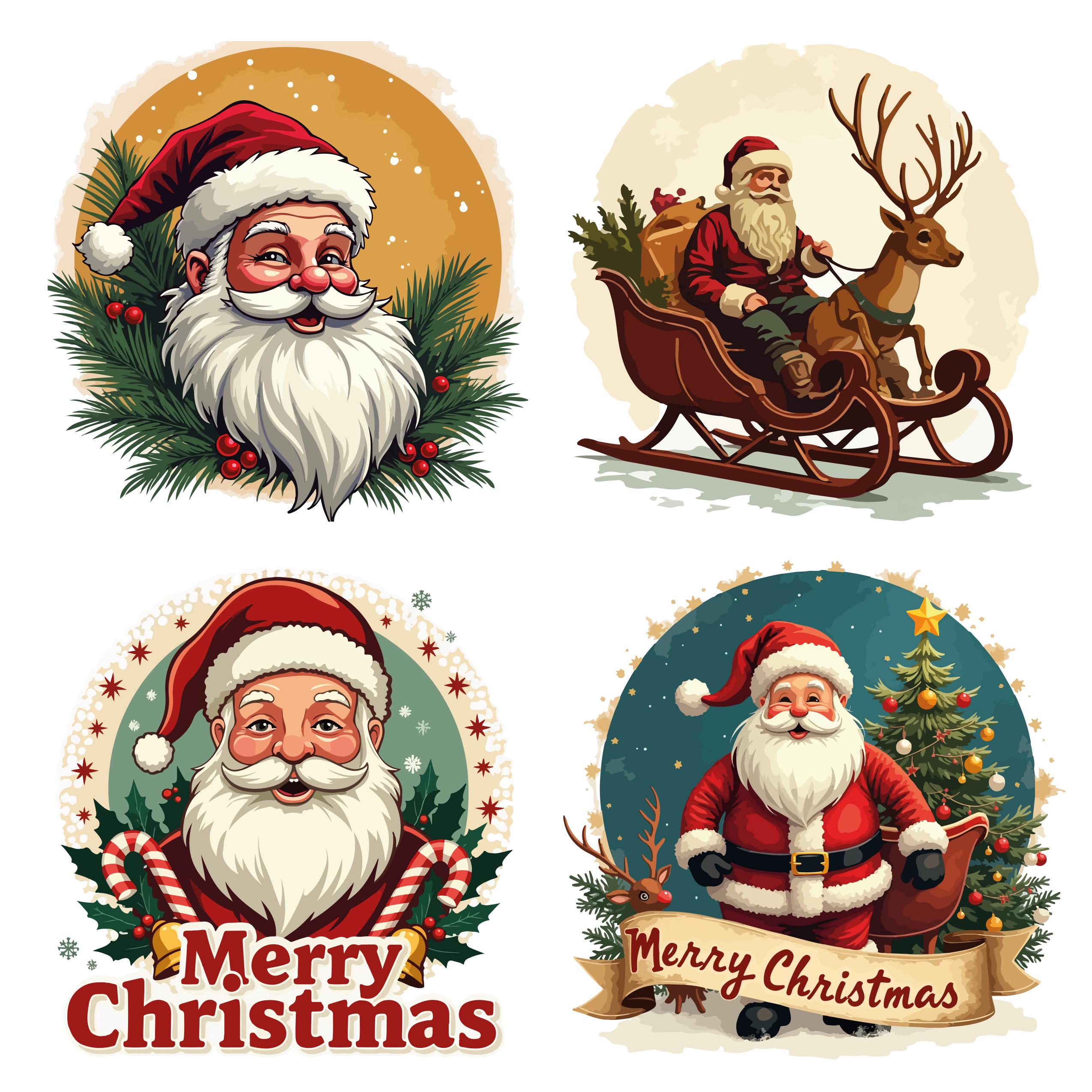 50+ unique retro-style Santa illustrations.