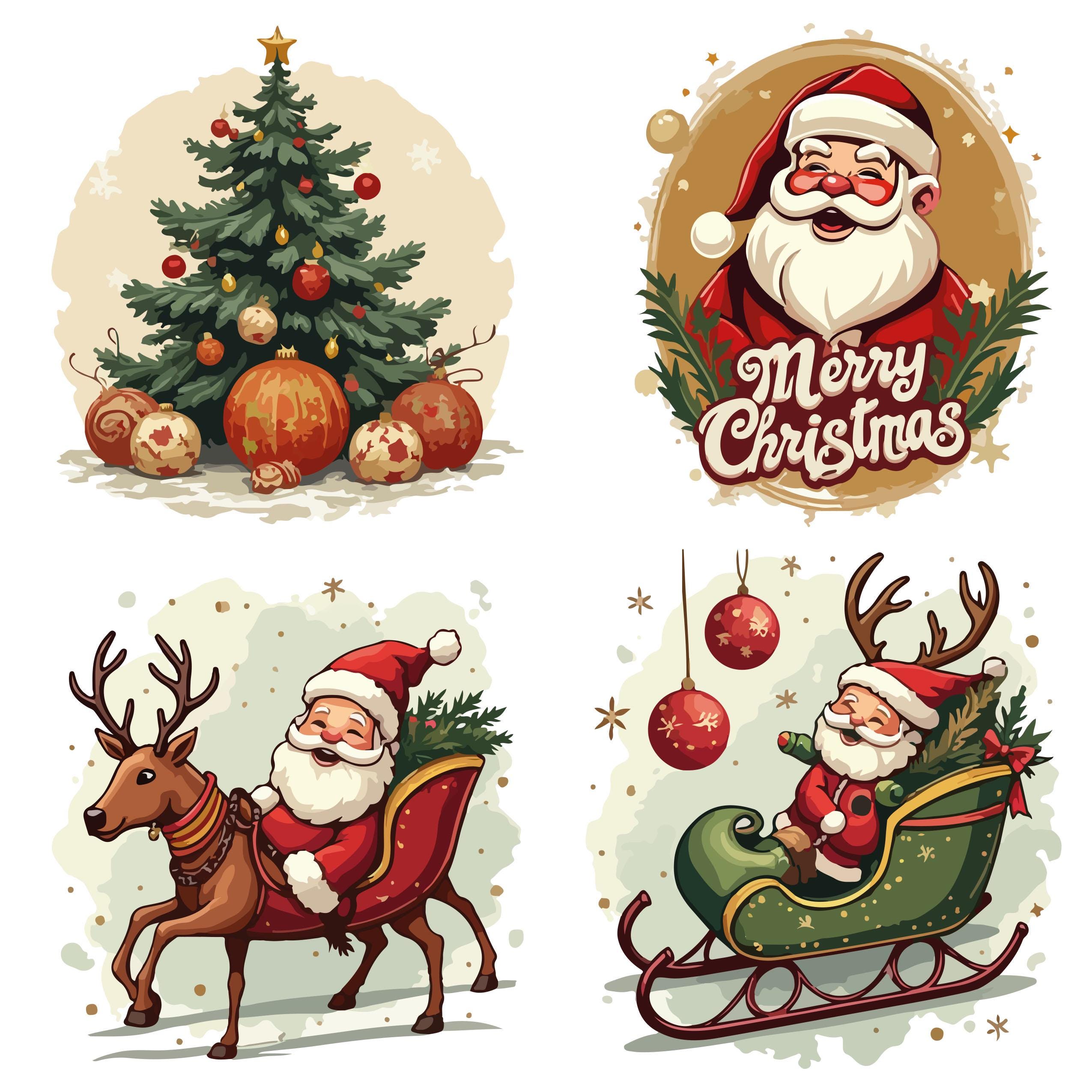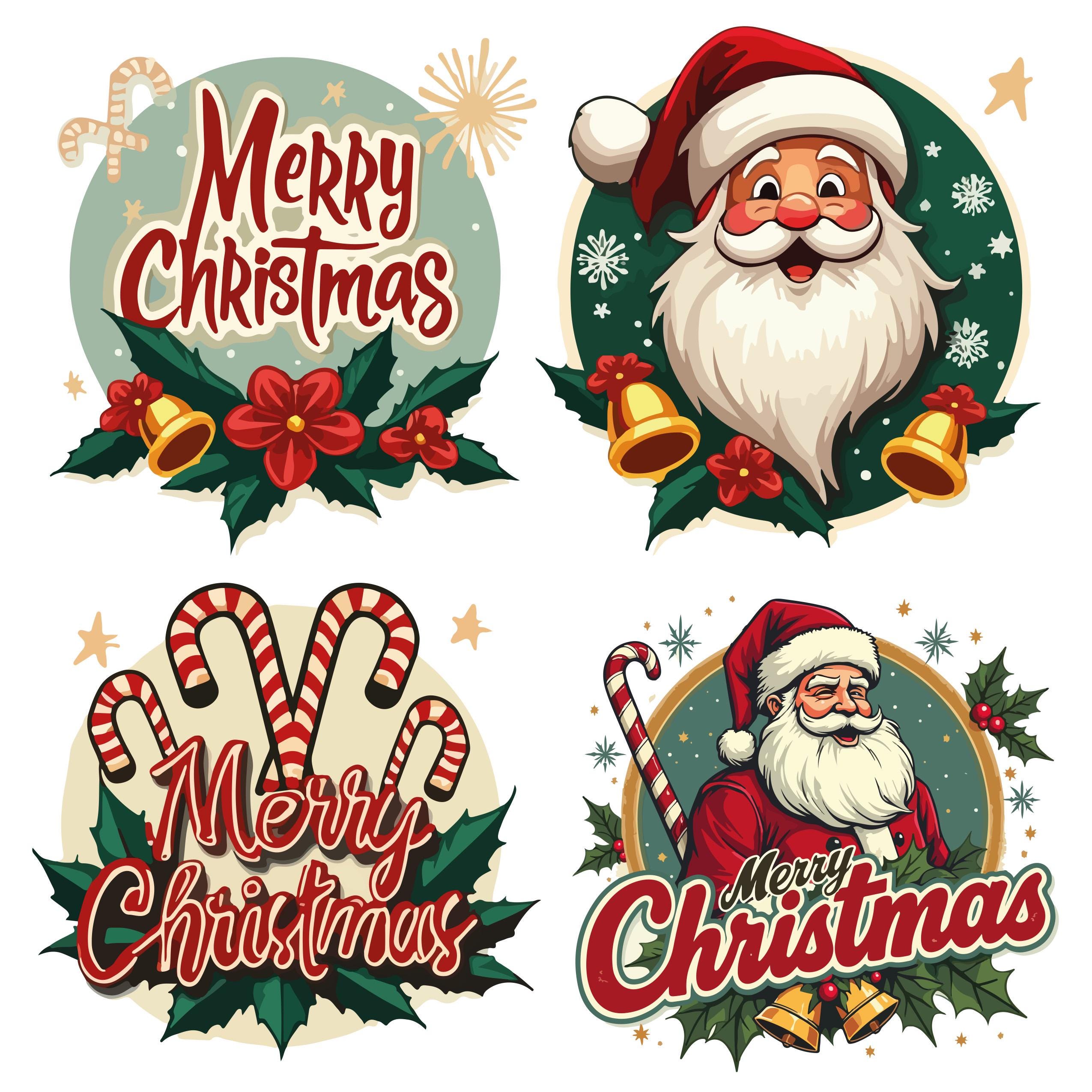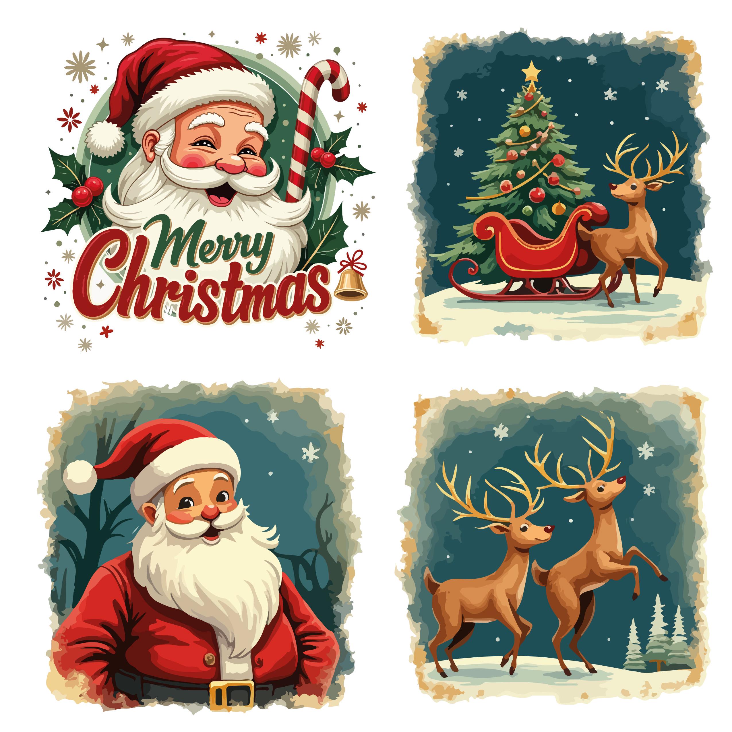 50+ unique retro-style Santa illustrations.