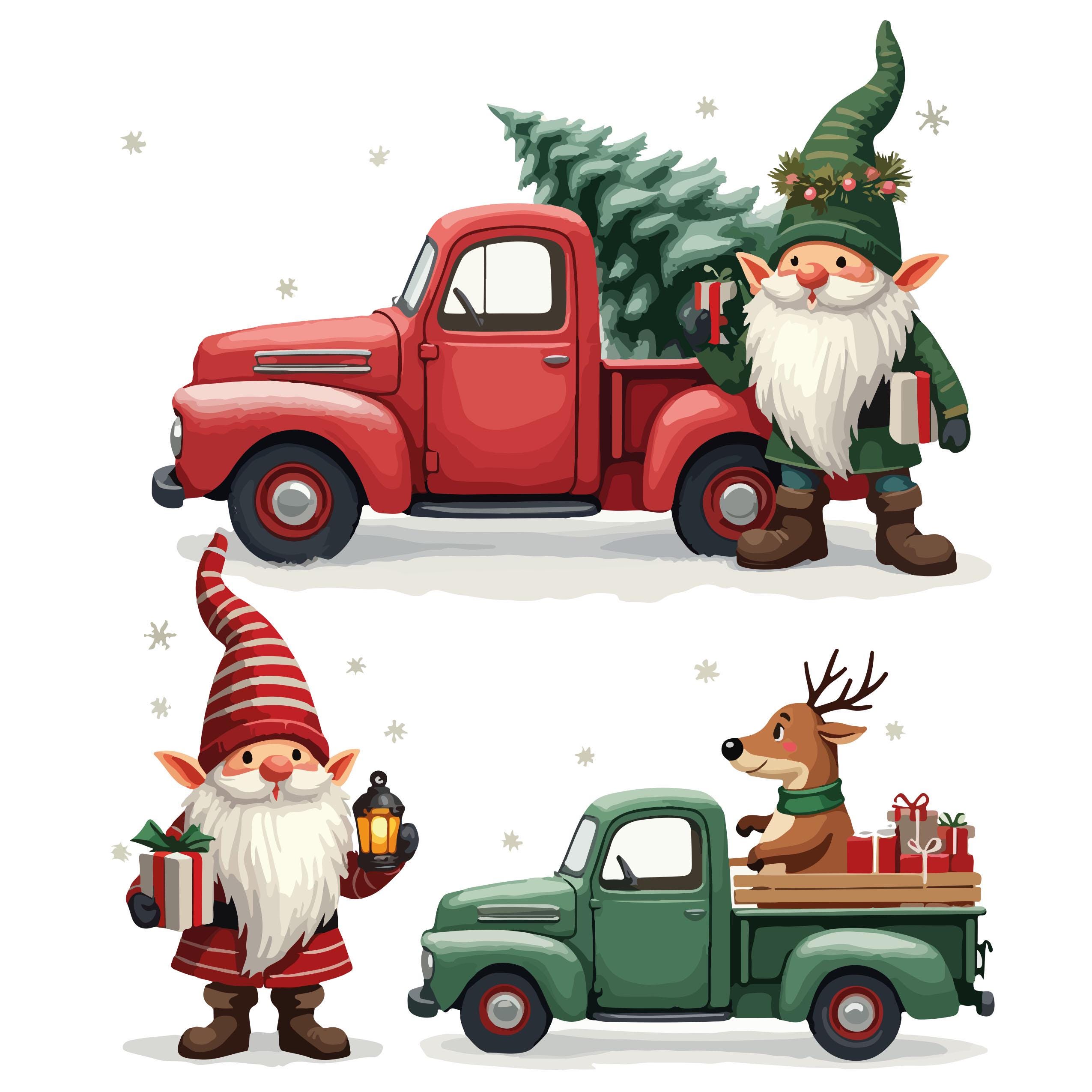 50 Christmas gnome and truck illustrations Commercial use allowed when integrated into new projects