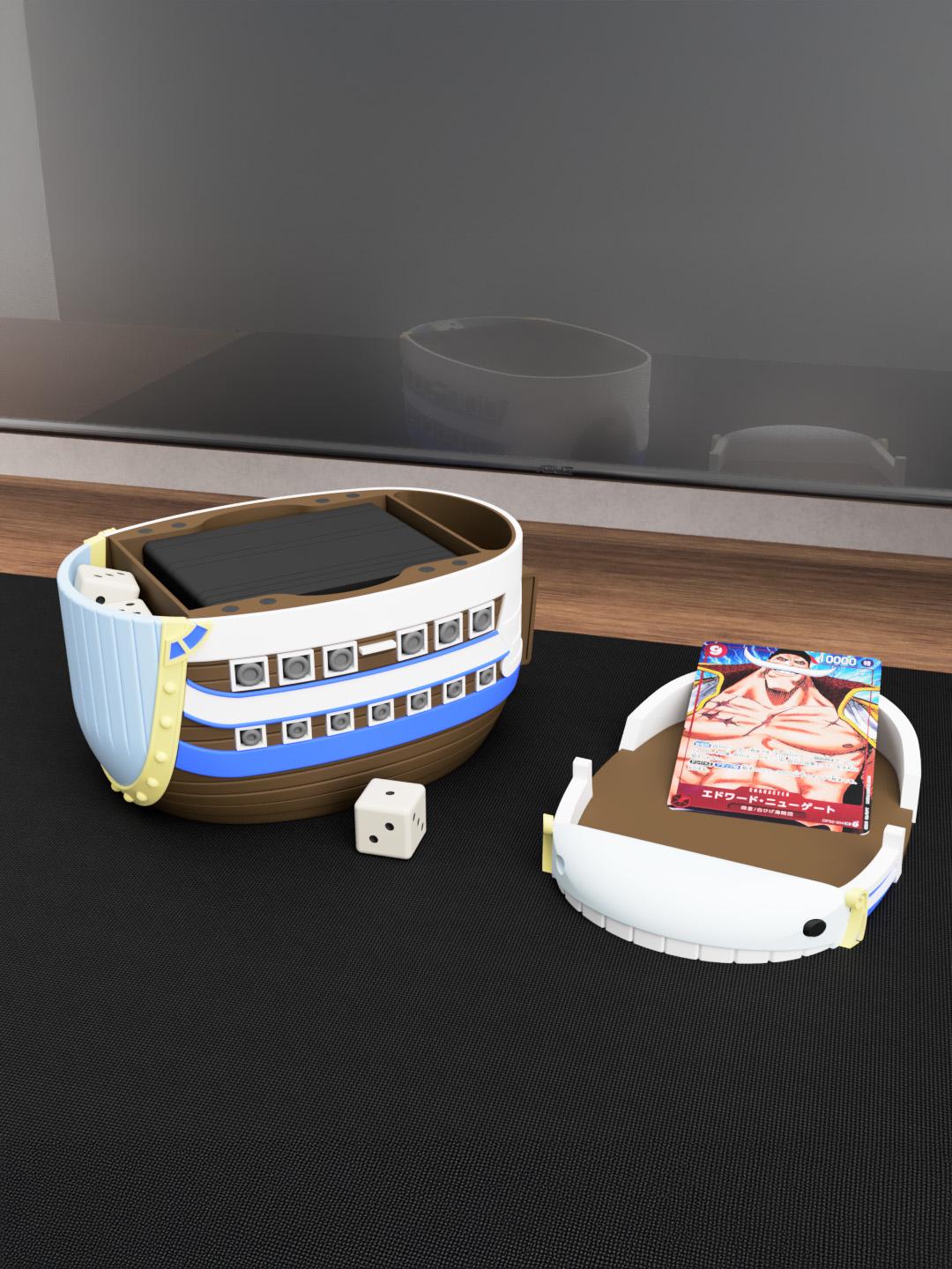 Moby Dick Inspired MTG Commander Deck Box • White Pirate Ship TCG Storage Case • Holds 100 Sleeved Cards & Dice Tray • Anime Deck Holder