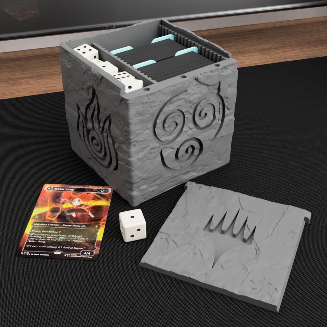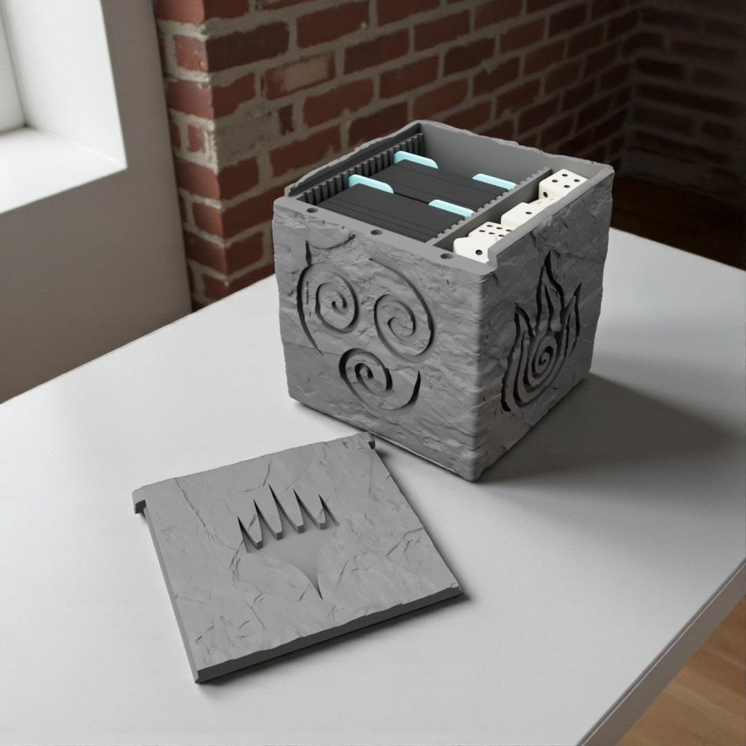 Harness the power of the elements with the Elements Commander-Inspired Deck Box 🌊🌍🔥💨 — a 3D printed deck box carved in the style of an ancient stone relic. Perfect for collectors and players who love strategy and elemental mastery, this deck box combines sturdy design with mystical aesthetics.