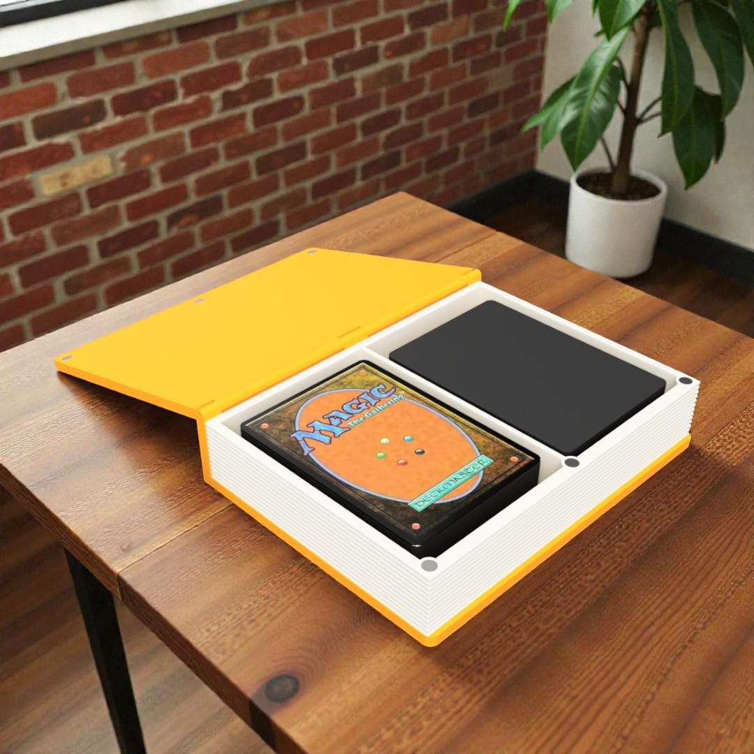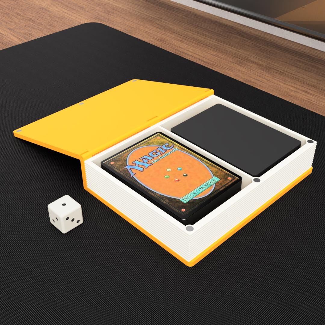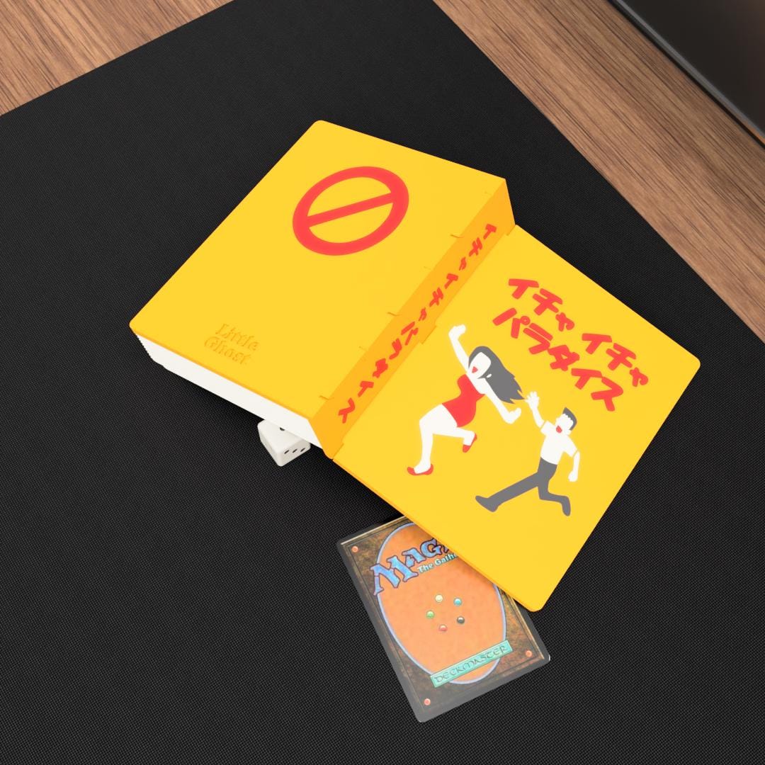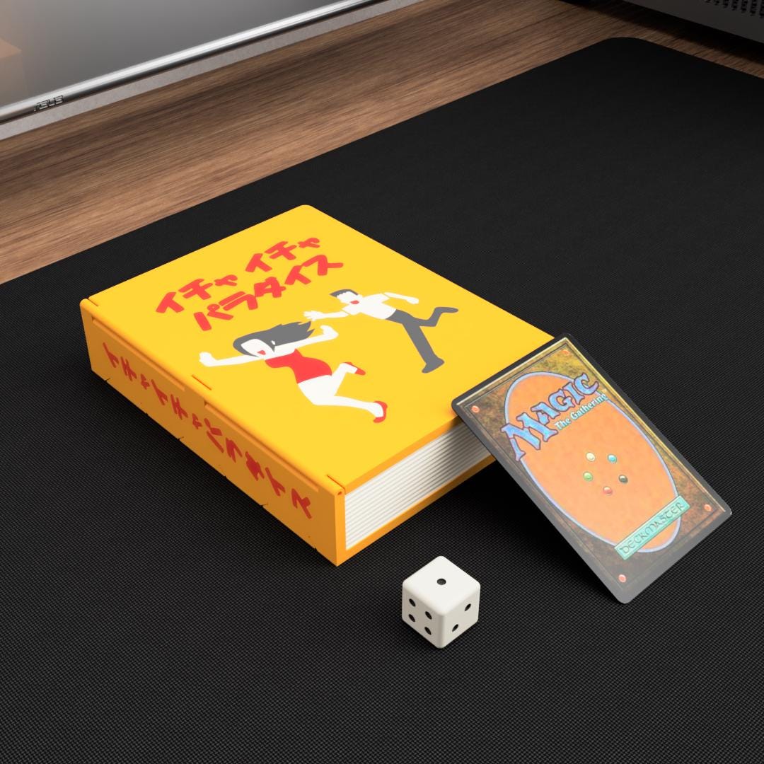 This anime-inspired book-style deck box is designed for players who love subtle references and clever tabletop accessories.