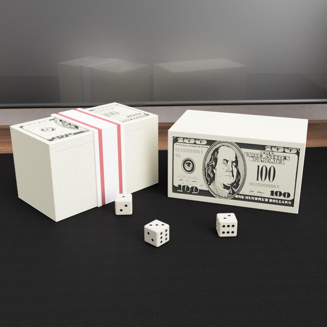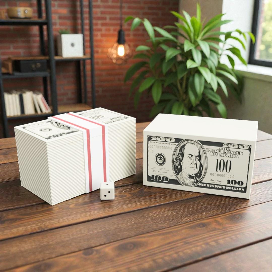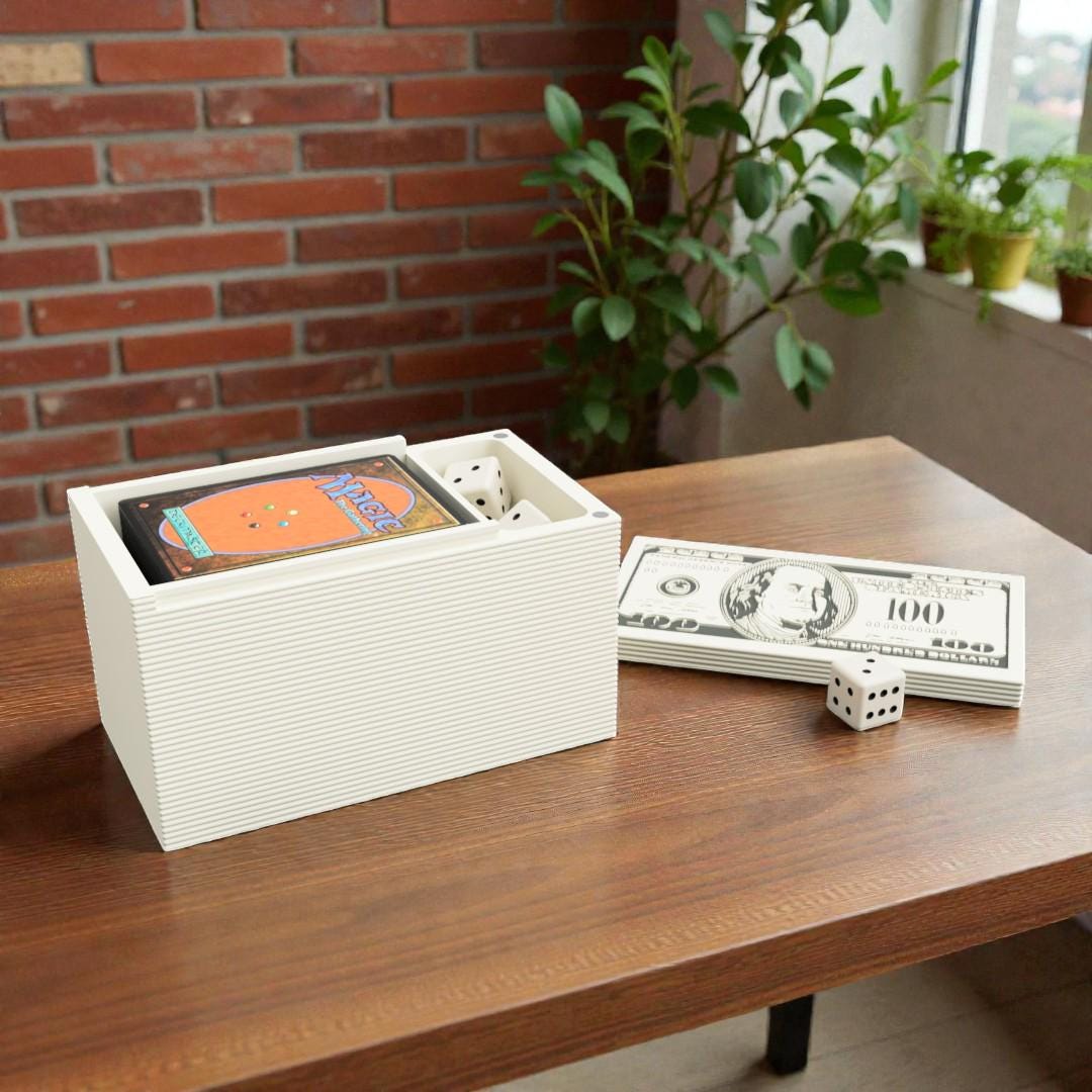This money stack–inspired Commander deck box is designed to look like a bold pile of cash, making it a fun and attention-grabbing accessory at the table. It’s perfect for players who enjoy humorous designs while still needing practical storage for their cards and accessories.