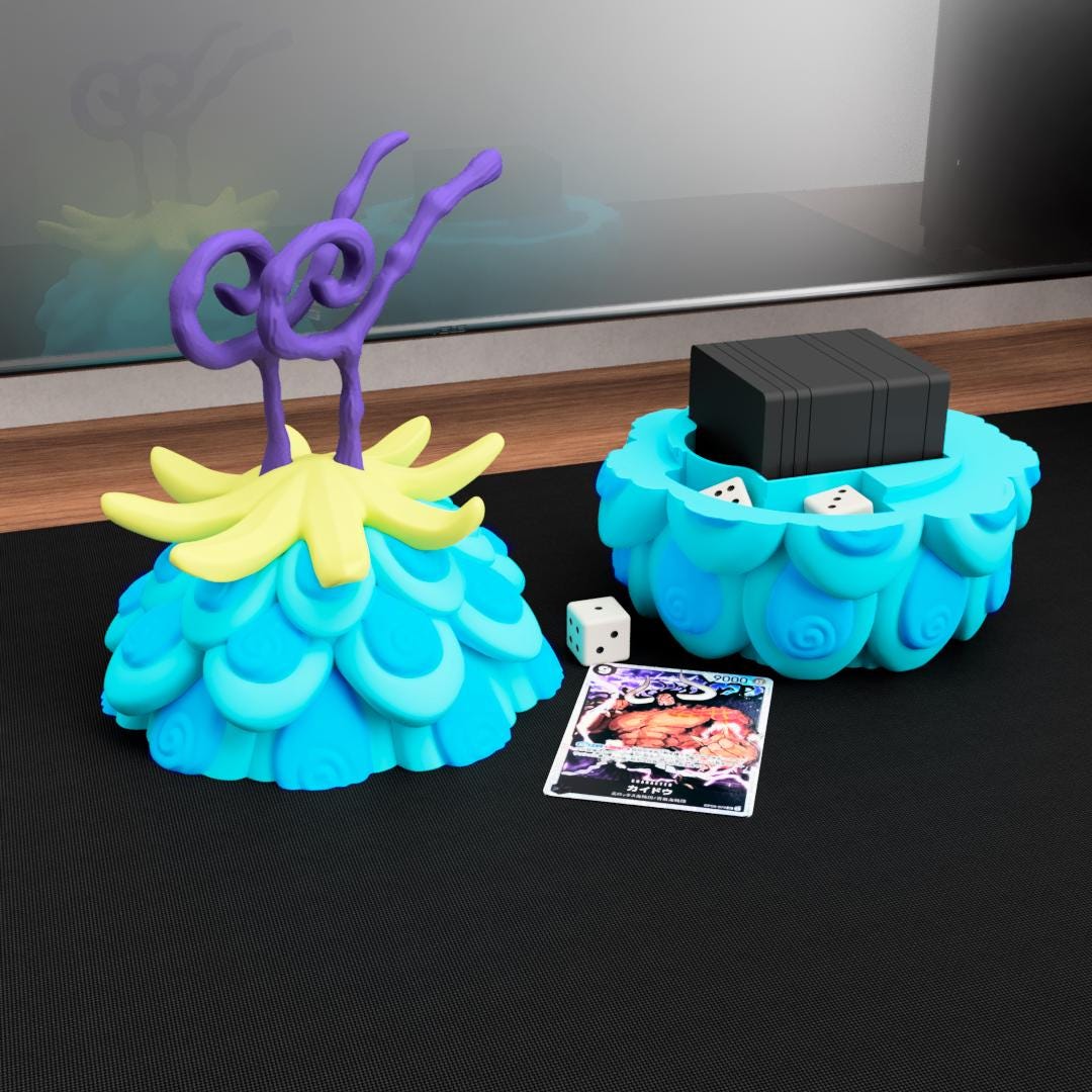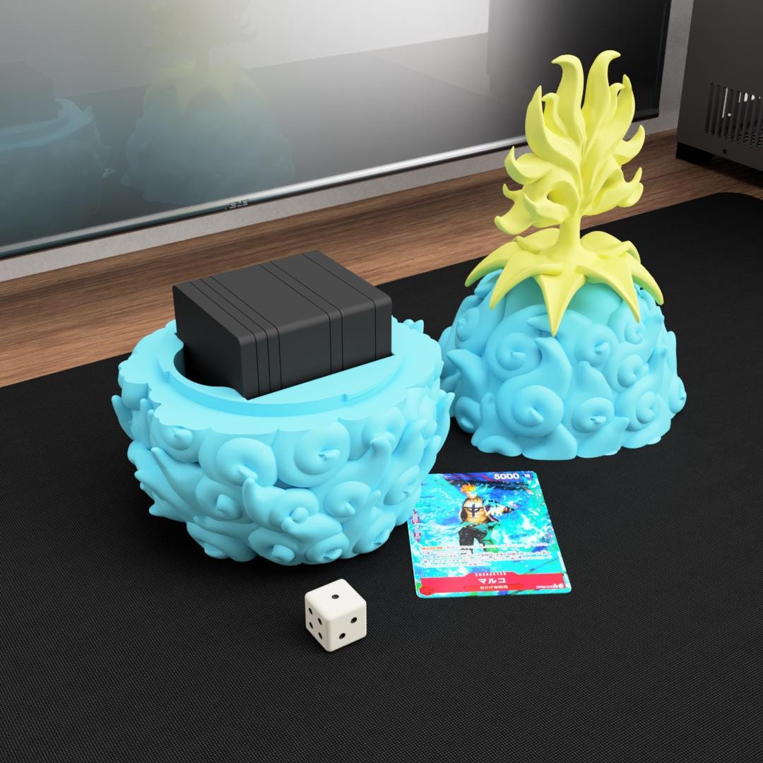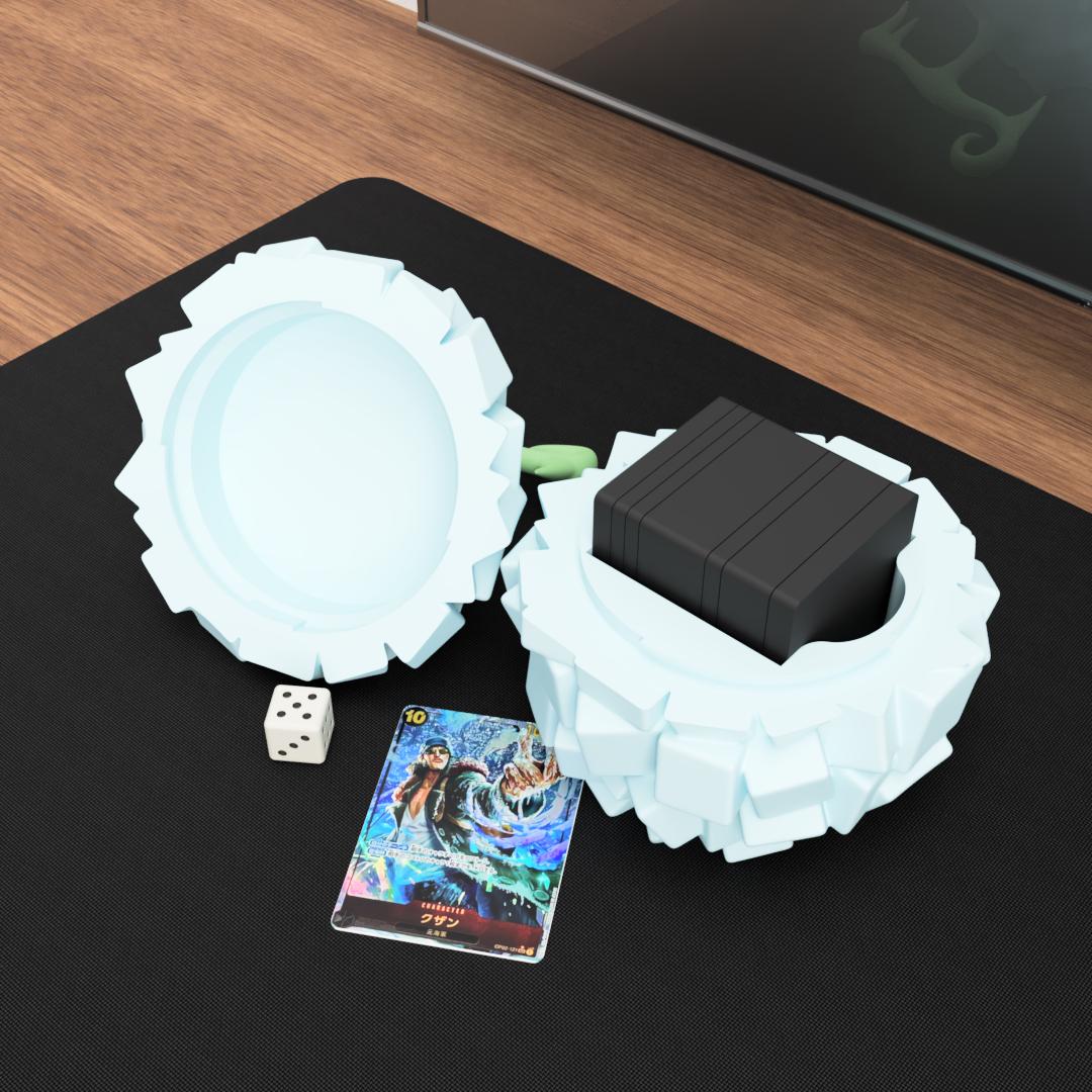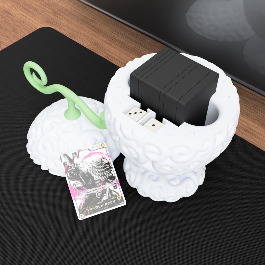 This fantasy fruit–inspired deck box collection takes inspiration from legendary transformation fruits often seen in pirate adventure stories. Each design represents a different elemental power while also functioning as a practical container for storing your trading card decks.