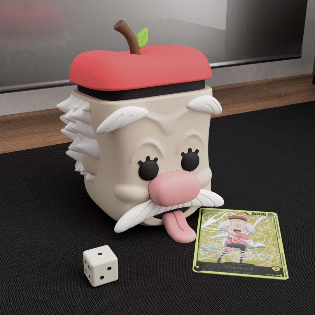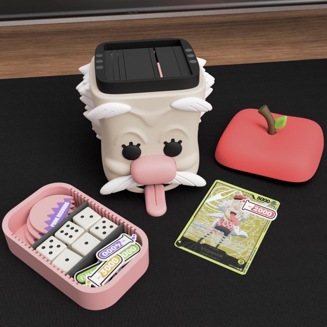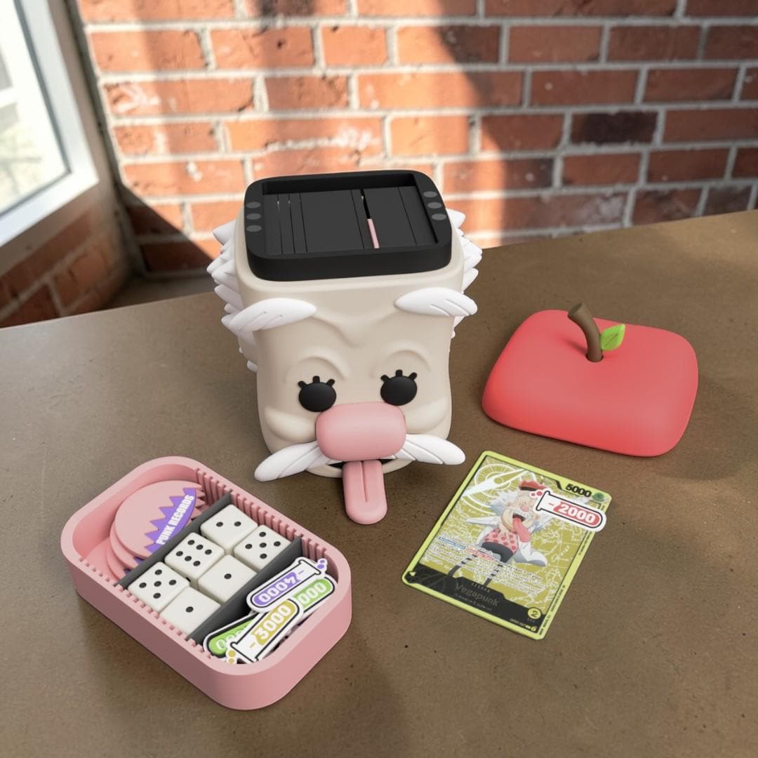 The clean cube shape combined with mechanical details gives it a distinctive “inventor’s workshop” look — making it both a functional card holder and a fun display piece for your gaming setup.